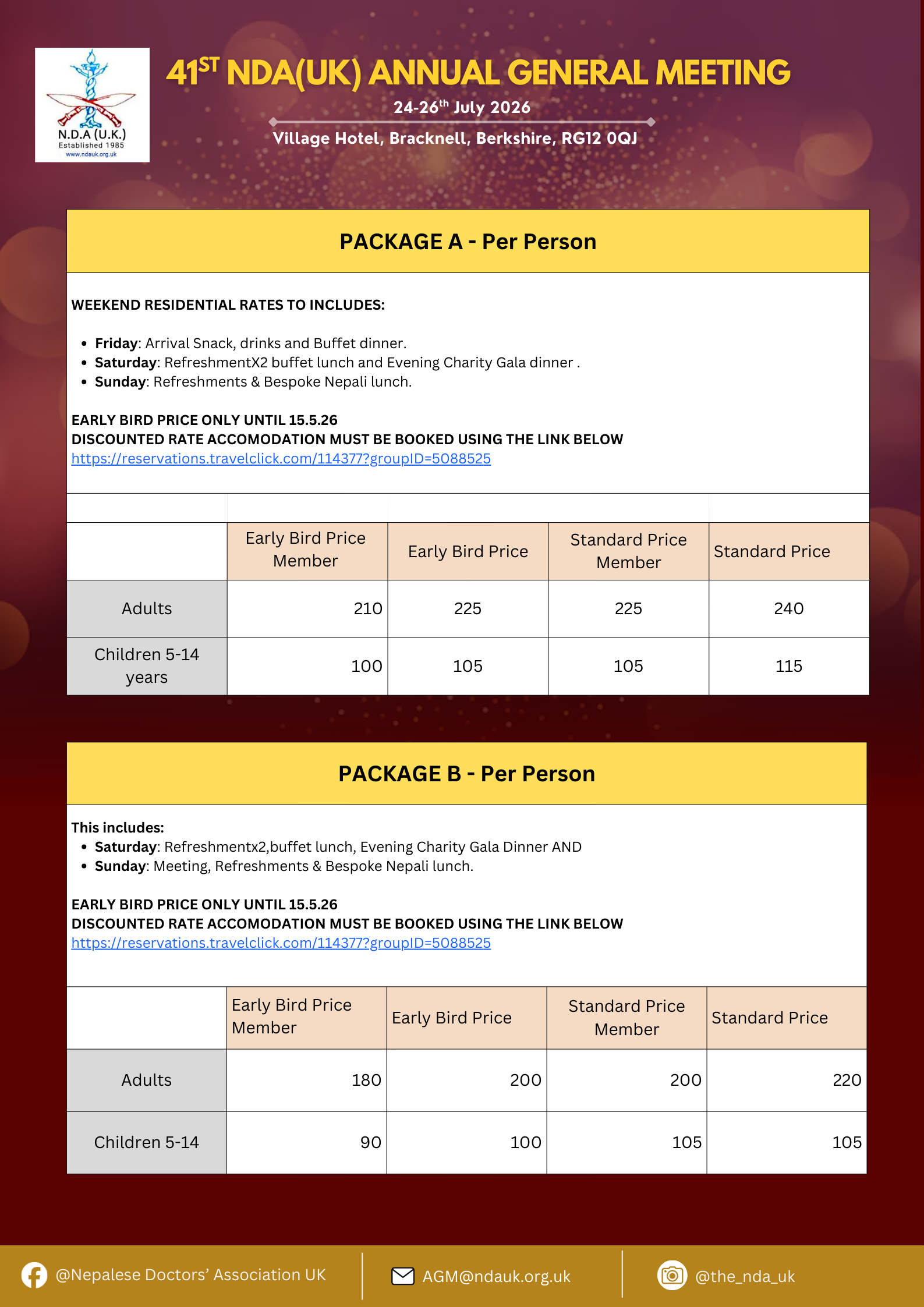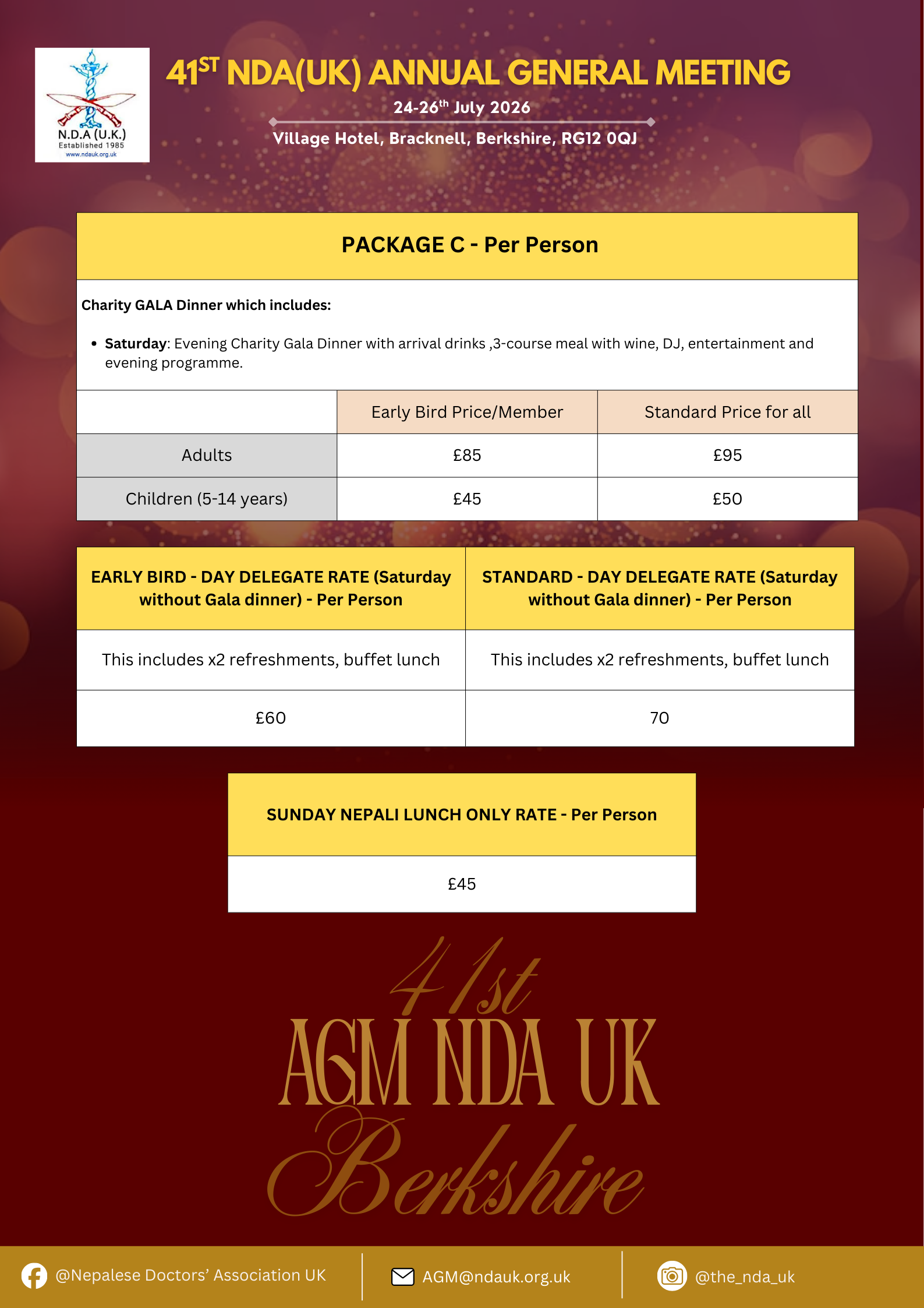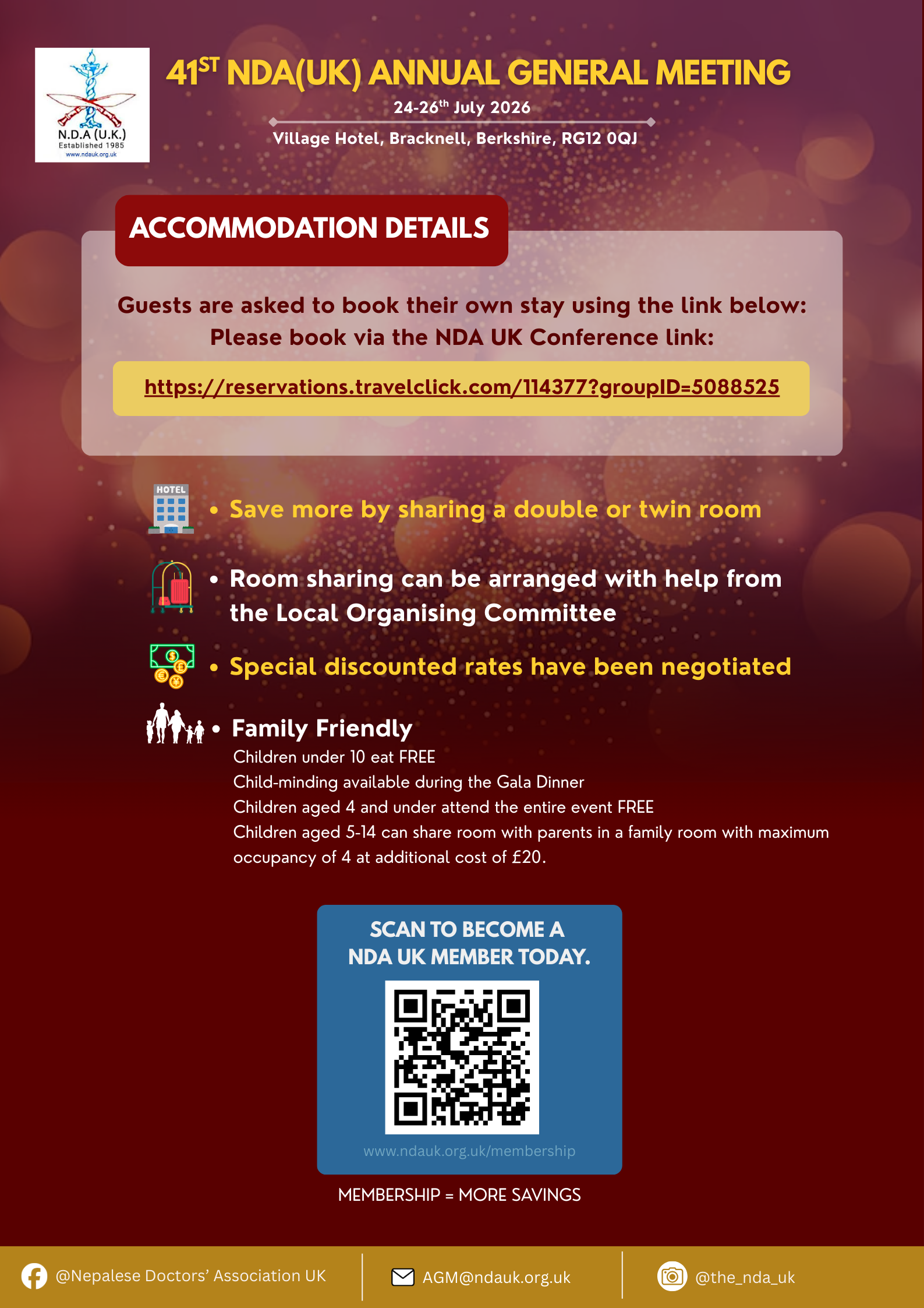 Please note that this year you are required to book your own hotel accommodation directly with the venue using the NDA UK AGM link below.